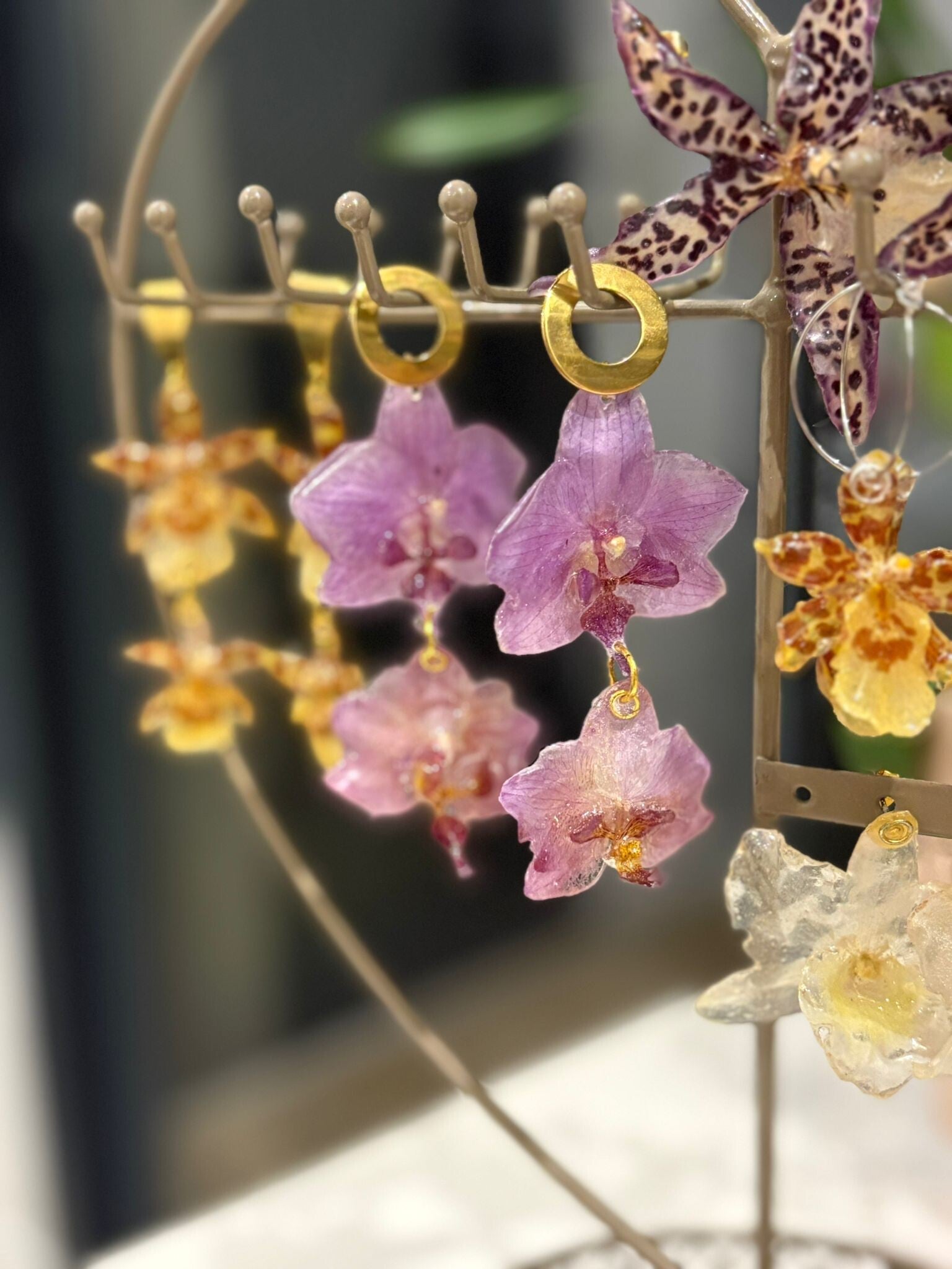 Superbe créatrice de bijoux avec des fleurs naturelles je lui est pris la pince en fleur d orchidée et un jolie collier en fleur d orchidée et perles qui est ma fleur préférée je vous la recommande merci beaucoup